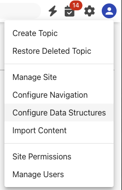 To define globally available metadata, as a site manager go to settings and select “Configure Data Structures”.
