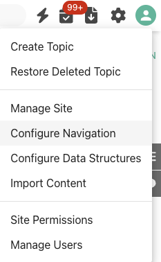 If you want to modify the menu nagivation, find the navigation editor in the top right settings menu as a site manager:
