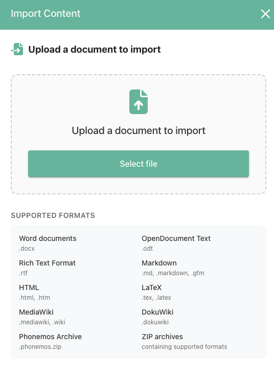 When on a Phonemos page, use the “…” menu on the right side pane and choose “Import content”.