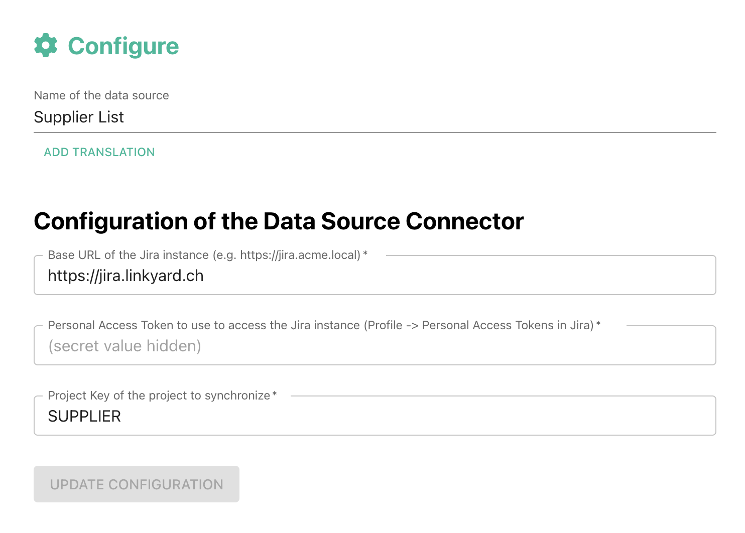 It needs the URL of Jira as well as the Project Key for the issues to synchronize.