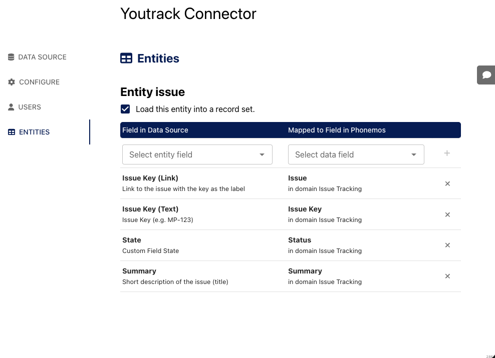 Youtrack can be added as an external data source to make Youtrack issue data available within Phonemos. The connector is read only. Updates in Phonemos do not lead to any change in Youtrack.