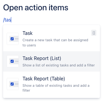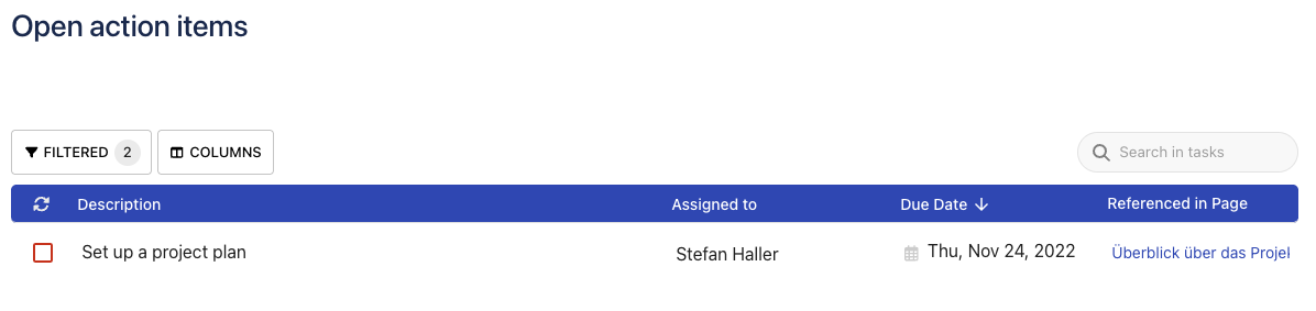 Use embedded task reports for example in meeting notes to show open tasks from previous meetings in order to address the progress.