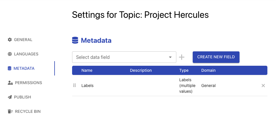 Labels are not automatically turned on, but need to be activated per topic in the topic settings. As a topic manager, open the topic settings and select metadata.