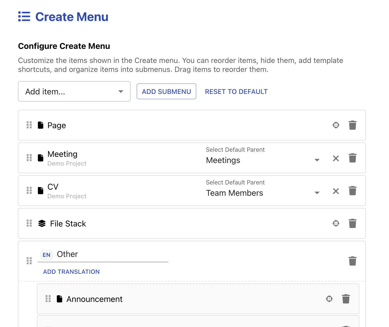 Configurable Create Menu