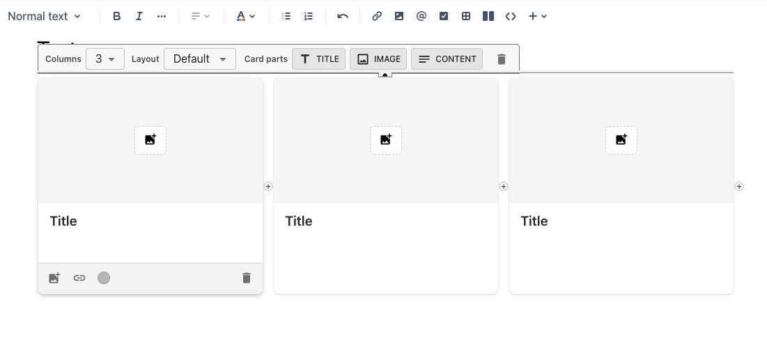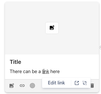 Every card has a title area, a content area and an image area. Each of them is optional and you can deactivate and activate each, though deactivating all is not really useful.